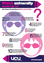 As well as probing the number of staff on temporary contracts, students are encouraged to ask what the student to staff ratio is at the institution and what plans the university has to deal with proposed cuts to disabled students' funding. UCU members will hand open day students a leaflet with the questions on.